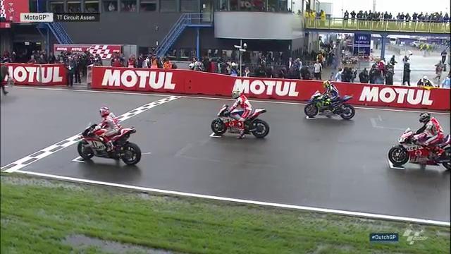 Любопытно, но спустя семь кругов после старта гонки Хорхе Лоренсо не был даже в очках! У действующего чемпиона мира и так были проблемы в Ассене, а вместе с дождем у Хорхе вообще не было никаких шансов на борьбу за большие очки.
