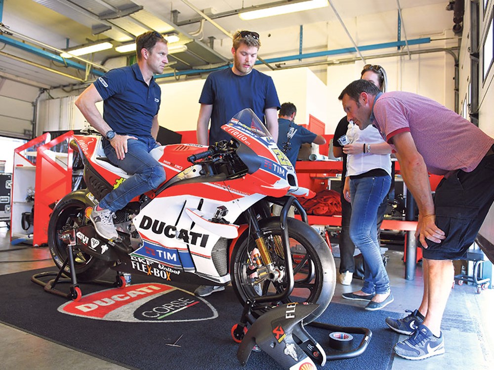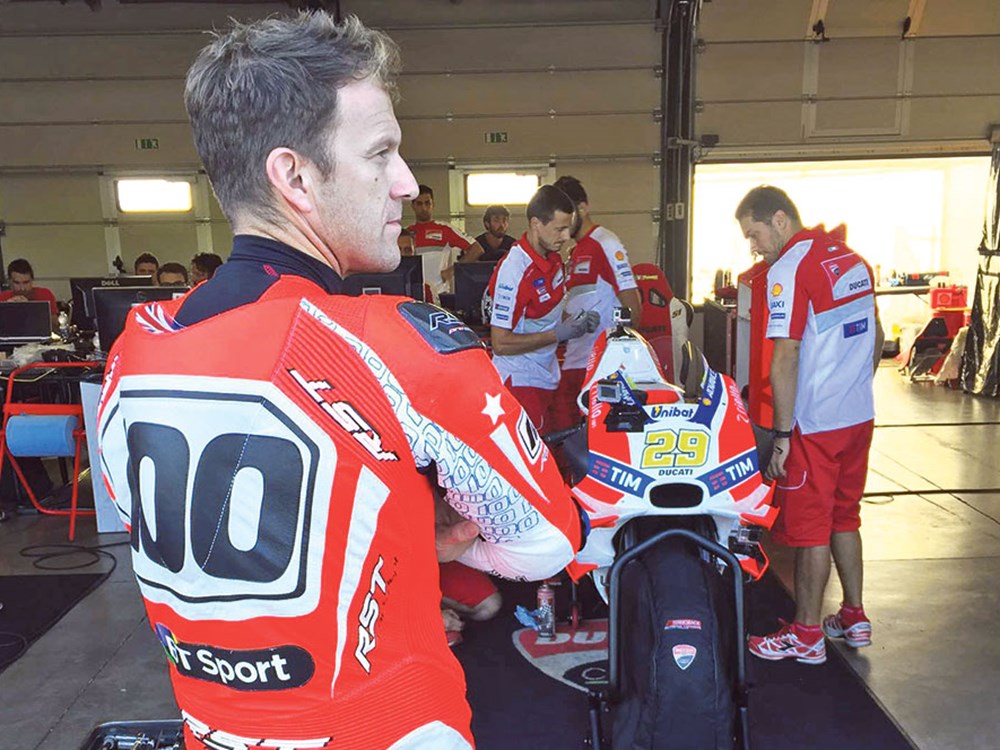 Я завязал с гонками в 2009-м, и с тех пор езжу только на дорожных мотоциклах, но в этом году я пока провел около 80 дней на треке, включая пять дней в августе, так что трековых миль у меня много. Еще я поездил на всех последних дорожных супербайках, когда тестировался с MCN, но к этому ничто не подготовит. Я нервничал до крайности — не только потому, что ездил на байке-победителе гонки MotoGP, но потому, что ездил на официальных тестах MotoGP, и на треке я был с «Априлией», «Дукати», и KTM MotoGP, и тест-пилотами.