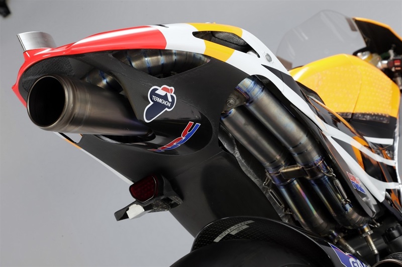 Что касается мотоцикла, то инженеры Honda продолжают совершенствовать его по всем параметрам, создавая сбалансированный во всех отношениях прототип: управляемость, стабильность, ловкость, маневренность, электроника, угловая скорость, а также многие другие качества и параметры. На модели 2013 года улучшено алюминиевое шасси с целью достижения максимальной стабильности, как при ускорениях, так и при прохождении поворотов. Шасси очень легкое, но в тоже время чрезвычайно жесткое, позволяя гонщику управлять 230-сильным двигателем. К тому же двигатель установлен в шасси так, что улучшает тягу и сцепление на поворотах.