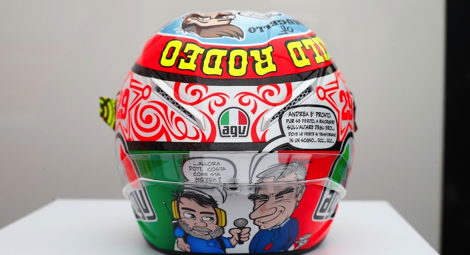 В то время, как мы находимся в ожидании презентации Валентино Росси своего очередного эксклюзивного шлема на домашнем этапе в Италии, Андреа Ианноне уже сделал это.