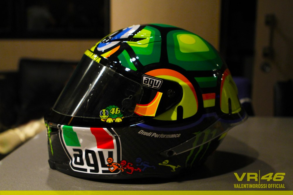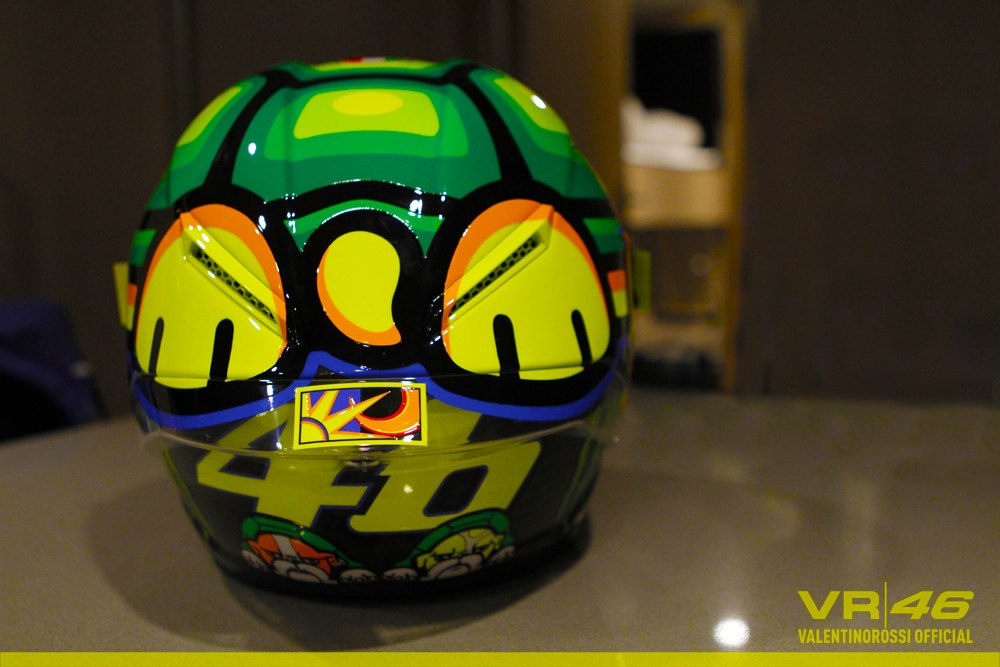 Ну вот сегодня в Муджелло Валентино Росси и представил свой новый шлем своим поклонникам. И на этот раз не обошлось без юмора. Главным героем стала черепаха, видимо, намекая на то, что Доктор пока не может догнать своих соперников.