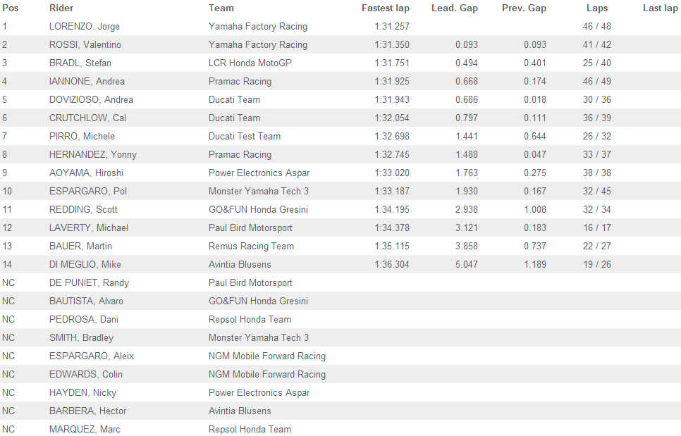 Результаты заключительного дня официальных тестов MotoGP в Валенсии 2014