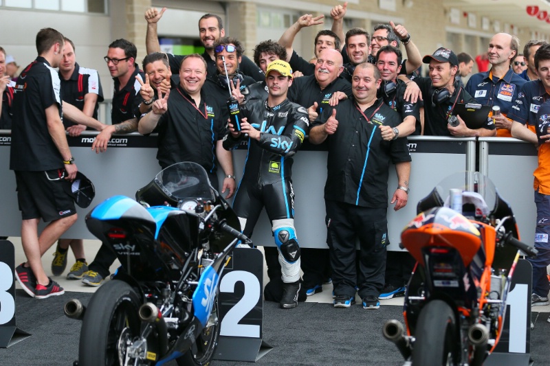Новоиспеченная команда чемпионата мира Moto3 Валентино Росси Team SKY-VR46 отпразновала свой первый подиум, добытый Романо Фенати в воскресенье на Гран-При Америк. К тому же можно отметить и неплохое выступление второго гонщика итальянской команды Франческо Багнай, занявшего седьмое место.