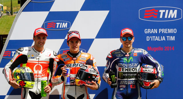 В сегодняшней квалификации MotoGP на трассе Муджелло в очередной раз никто не сумел противостоять лидеру чемпионата мира Марку Маркесу. Ему удалось проехать круг за 1:47,270 мин., не оставив и шанса своим соперникам. Для испанца это уже шестая поул-позиция из шести возможных в этом сезоне. Сумеет ли его кто-нибудь остановить?