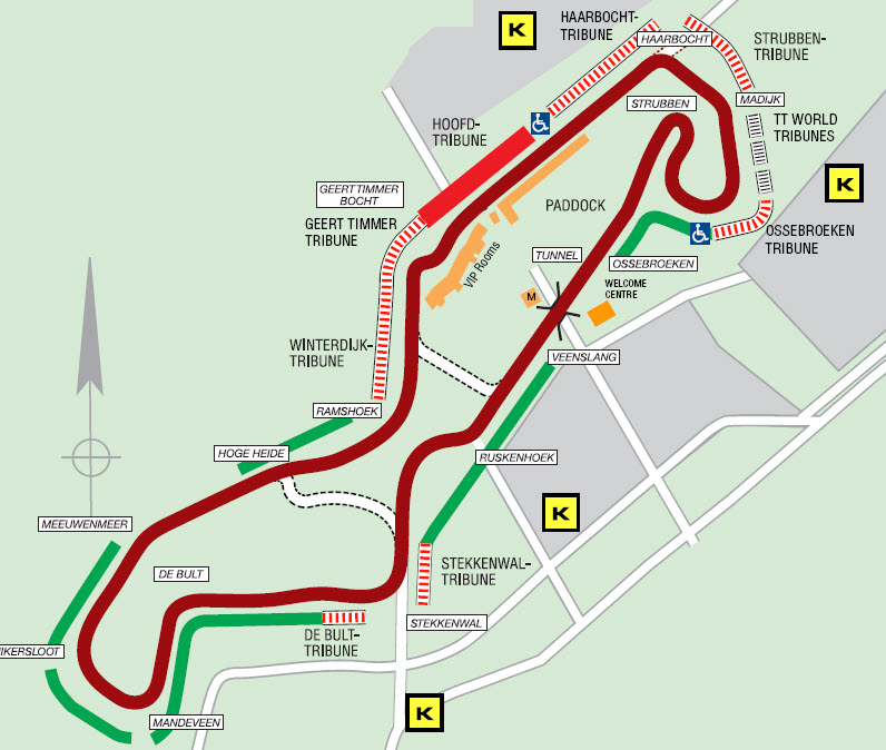 В 1949 году впервые учрежденный чемпионат мира по кольцевым мотогонкам уже включал в себя нидерландский этап. Гонка проходила по трассе протяженностью 16,5 км, на дорогах общего пользования. Такая конфигурация сохранялась вплоть до 1955 года, когда был построен классический гоночный трек длиной 7,7 км.