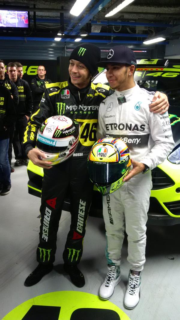 Двукратный чемпион мира Formula 1 Льюис Хэмильтон и семикратный чемпион мира MotoGP Валентино Росси обменялись шлемами на Monza Rally Show. Хэмильтон, принимавший участие в празднике «Мерседеса» Stars and Cars в Штуттгарте, сразу по окончании мероприятия прибыл в Монцу, где Росси боролся за победу против бывшего пилота Formula 1 Роберта Кубицы.
