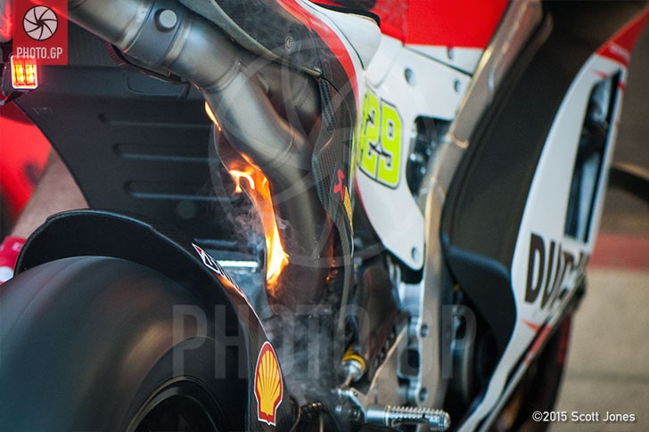 Во время прогрева Ducati GP15, принадлежащего Андреа Ианноне, знаменитый фотограф в мире мотогонок Скотт Джонс заметил, что мотоцикл дымится, а потом начал откровенно гореть. Фотограф показал одному из механиков, что у них «небольшие» проблемы, после чего огонь был моментально потушен с помощью сжатого воздуха, но Скотту удалось запечатлеть этот момент.