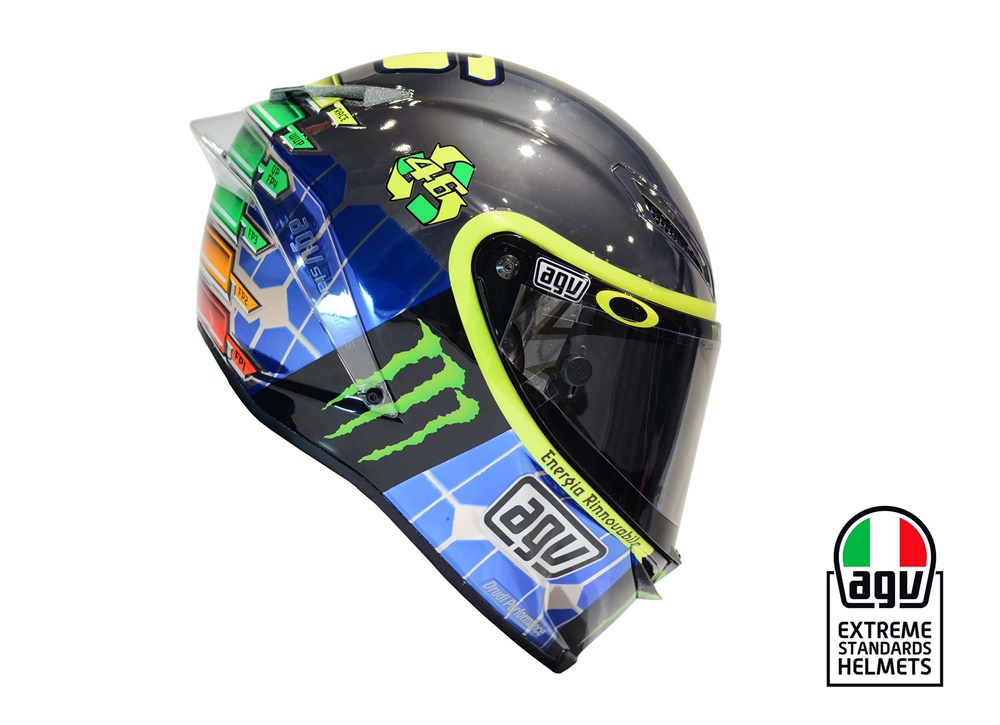 На задней части новинки есть шесть энергетических уровней, которые характеризуют подход Валентино Росси к каждому этапу, так как итальянец постепенно набирает форму, доходя до пика как раз к гонке. На правой стороне шлема написано «Energia Rinnovabile» (возобновляемая энергия), в то время как гоночный номер Росси №46 вписан в значок переработки.
