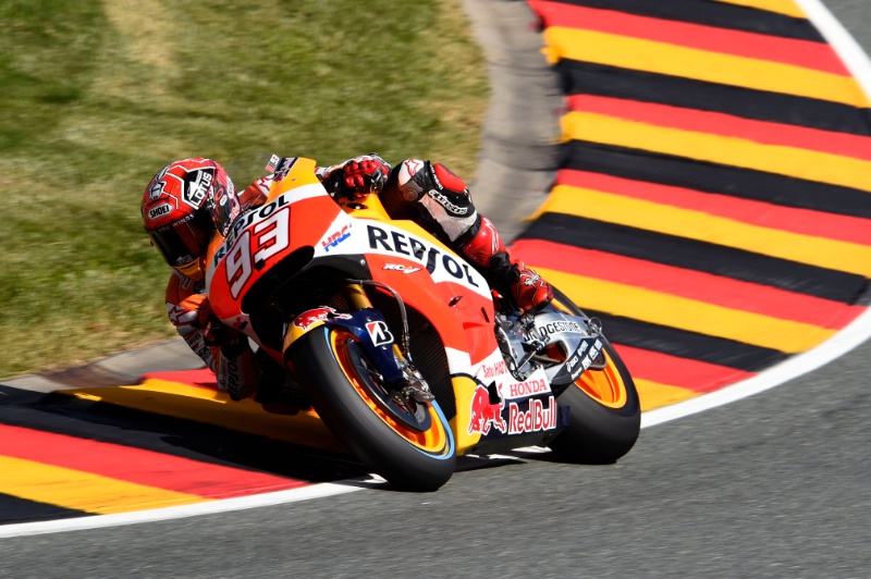 Марк Маркес провел первый день Гран-При Германии на высшем уровне. Испанец стал беспрецедентно лучшим по итогам первых двух практик, но не собирается расслабляться. Соперники постараются во что бы то ни стало догнать Марка завтра, но молодой чемпион тоже будет работать над своим темпом.
