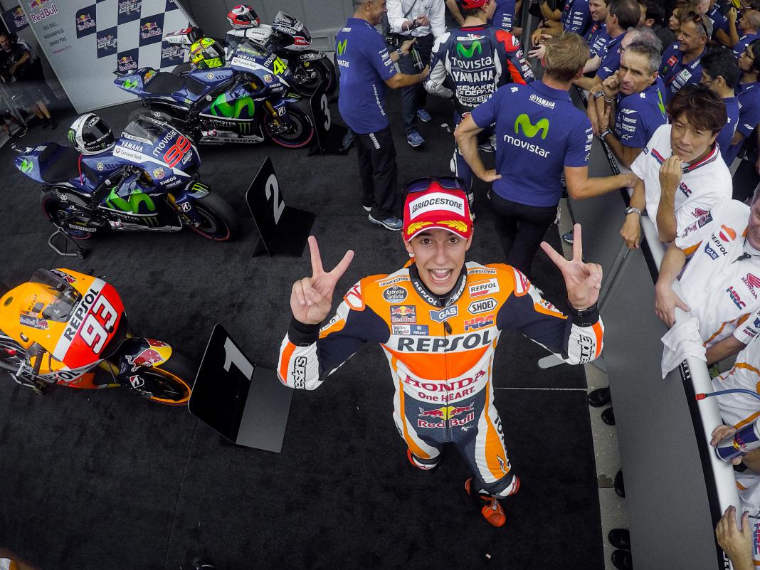 Сегодня Марк Маркес из Repsol Honda выиграл с поул-позиции Гран-При Индианаполиса, поучаствовав перед этим в захватывающей битве с Хорхе Лоренсо из Movistar Yamaha. В результате эта победа у действующего чемпиона MotoGP стала седьмой подряд в премьер-классе на американской земле.