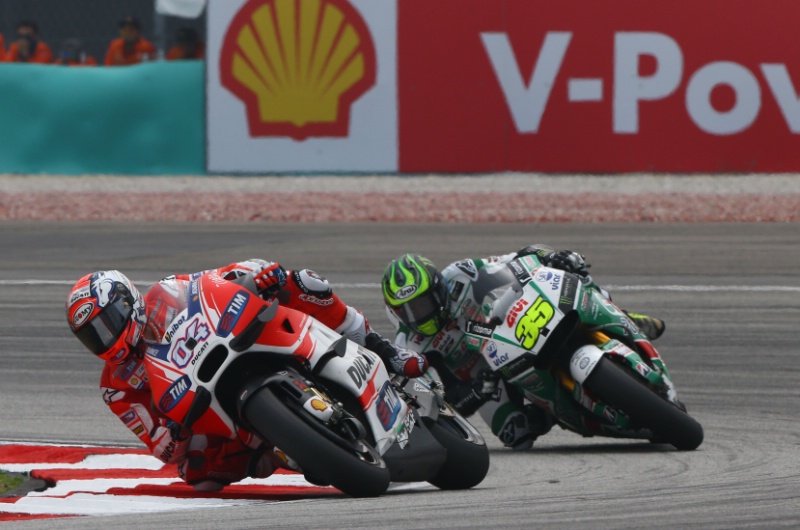 В середине гонки MotoGP Гран-При Малайзии Андреа Довициозо уверенно занимал четвертую позицию. Кэл Крачлоу плотно преследовал его и решил обогнать итальянца в связке пятого и шестого поворотов, но немного не рассчитал и «вынес» Дови.