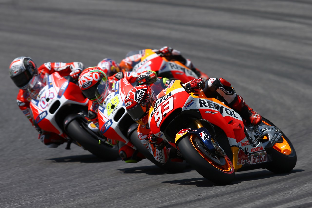 Бодрые гонки в исполнении «дукатистов» постепенно стали сходить на нет, и Repsol Honda стала вытеснять итальянцев на позиции пониже, медленно возвращаясь на привычное место главного конкурента Yamaha. На этапе в Каталонии на подиум не поднялся ни один из райдеров Ducati. Марк Маркес в этой гонке сошел на ранней стадии, но зато третьим стал Дани Педроса, впервые попав в топ-3 после финала прошлого года.