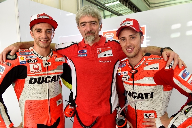 Пока что у нас все идет по намеченному ранее плану. Ианноне и Довициозо на ближайших тестах будут заниматься сравнением старой и новой версии мотоциклов. У каждого будет в распоряжении по два GP16. Цель — сделать так, чтобы тесты в Малайзии стали фундаментом/качественной основой для последующей работы.