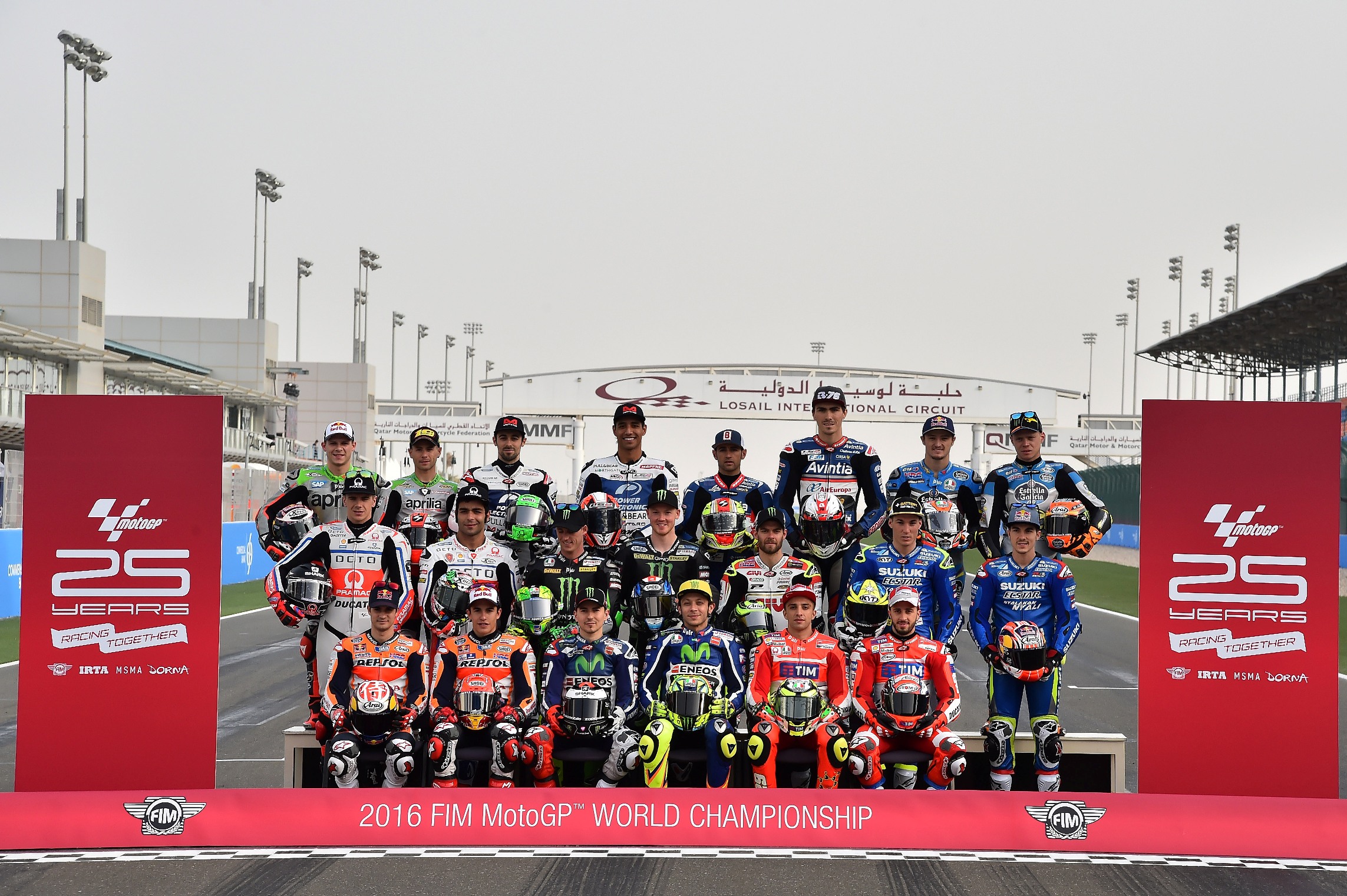 Фото дня: профессионалы и их снаряжение, год 2016 Кадры с групповой фотосессии всех участников чемпионата MotoGP 2016 года на треке Лосаил. Теги: MotoGP, фотоGP Дата: 18.03.16 Источник: Все о мире Moto Редактор: Индиан