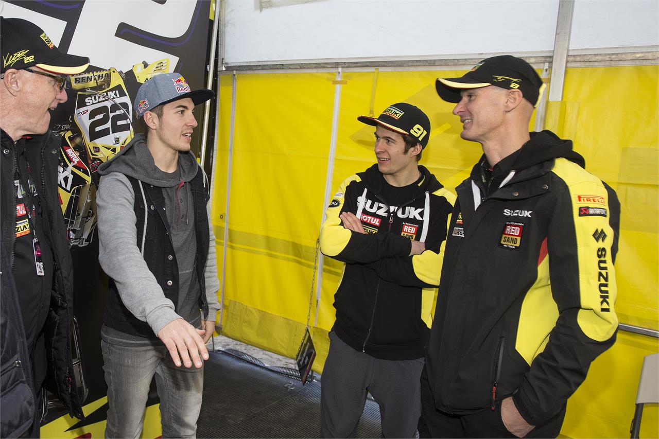 Испанец поглядел на кроссовые RM-Z450 и RM-Z250 в действии и пообщался с первыми лицами команды, большими чемпионами Стефаном Эвертсом и Сильвеном Геборсом, а также с их гонщиками Бэном Таунли и Джереми Сивером. Стефан предложил Маверику почаще всем собираться на совместных тренировках, и #25 ответил согласием на такое предложение. Сам Эвертс рассчитывает посетить и какой-нибудь этап MotoGP.