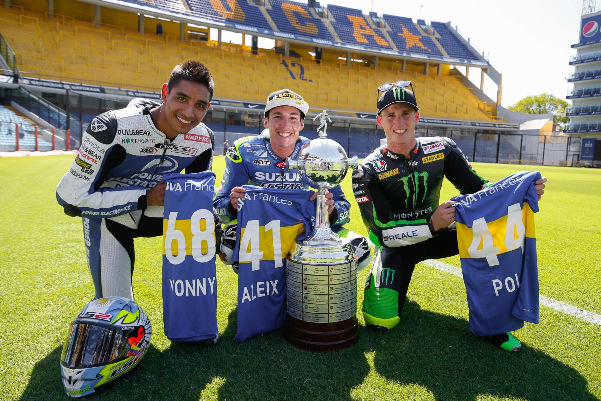 Предгранприйное шоу MotoGP в Аргентине — проезд трех райдеров по Буэнос-Айресу с окончанием маршрута на футбольном поле Ла Бомбонера. В главных ролях — Йонни Эрнандес на Ducati Panigale, Алейш Эспаргаро на Suzuki GSX-R и Поль Эспаргаро на Yamaha YZF-R1.