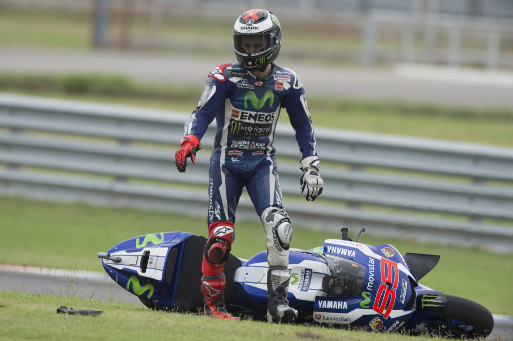 Победитель предыдущей гонки MotoGP в Катаре Хорхе Лоренсо увозит с Аргентины нулевой результат из-за аварии в начале шестого круга. Для испанца уик-энд строился на контрасте: в первый день ему не хватало до лидеров более секунды; во второй день он нашел, где снять это время, и занял в квалификации третью строчку; в третий день на разминке ему опять не хватало скорости (почти 1,8 секунды проигрыша по темпу), но затем сам заезд Лоренсо начал с захвата первой позиции. Райдер Movistar Yamaha полидировал несколько поворотов и начал быстро терять места. В итоге испанец откатился на шестое место, но и на нем он не удержался: первый поворот шестого круга он закончил лежа на боку.