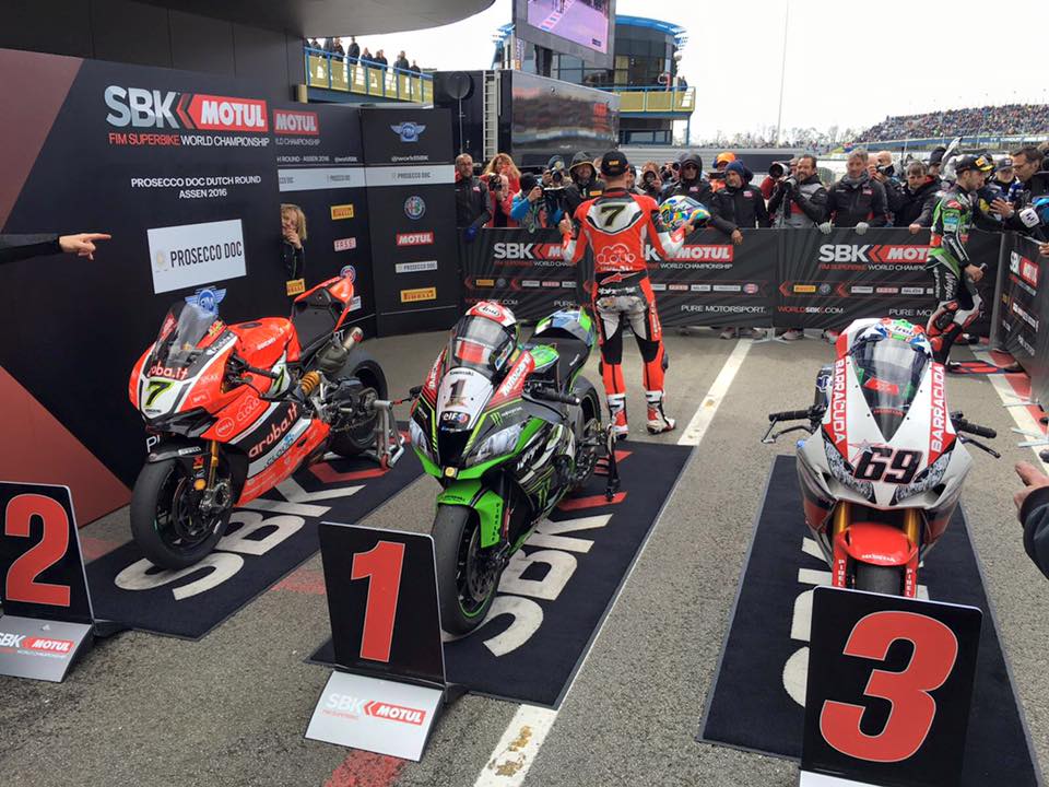 Ники Хэйдену в эту субботу покорился первый в карьере подиум мирового Супербайка: на этапе в Ассене американец провел надежную гонку, «пережил» нескольких упавших соперников и взял бронзу первой гонки. На подиуме оказались три разных мотоцикла: Kawasaki (Джонатан Рэй), Ducati (Чаз Дэвис) и Honda (собственно Хэйден). Для экс-чемпиона MotoGP это был также первый призовой финиш с Хереса-2011.