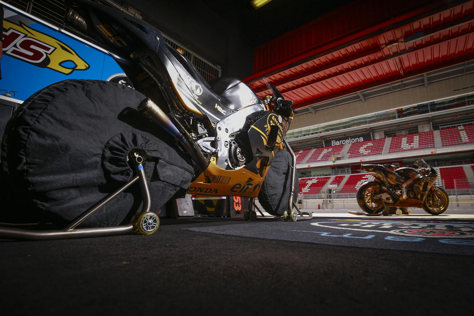 Главный спонсор команды Marc VDS компания Estrella Galicia, занимающаяся производством пива, на гоночном уик-энде в Монмело отмечала свой 110-летний юбилей, частью которого стала особенная ливрея для ее мотоциклов всех трех классов Гран-При. Сначала планировалось, что в такой расцветке байки выйдут на старт гонок, но расцветки оставили обычными. Тем не менее, Джек Миллер и Тито Рабат именно на таких аппаратах откатали сегодняшний однодневный тест на Барселоне-Каталунье.