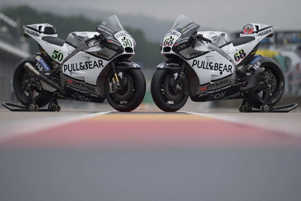 Обе команды Хорхе «Аспара» Мартинеса — в MotoGP и Moto3, — предстанут на немецком Гран-При в новых цветах своего спонсора Pull&Bear. С этим брендом молодежной одежды Aspar Team сотрудничает пять лет, и чтобы эта дата запомнилась, было решено перекрасить мотоциклы в новые цвета, которые при этом напоминают о том, что в Германии бренд окажется не просто спонсором коллектива, а титульным спонсором. Вот такие Ducati будут на уик-энде у Юджина Лаверти и Йонни Эрнандеса.