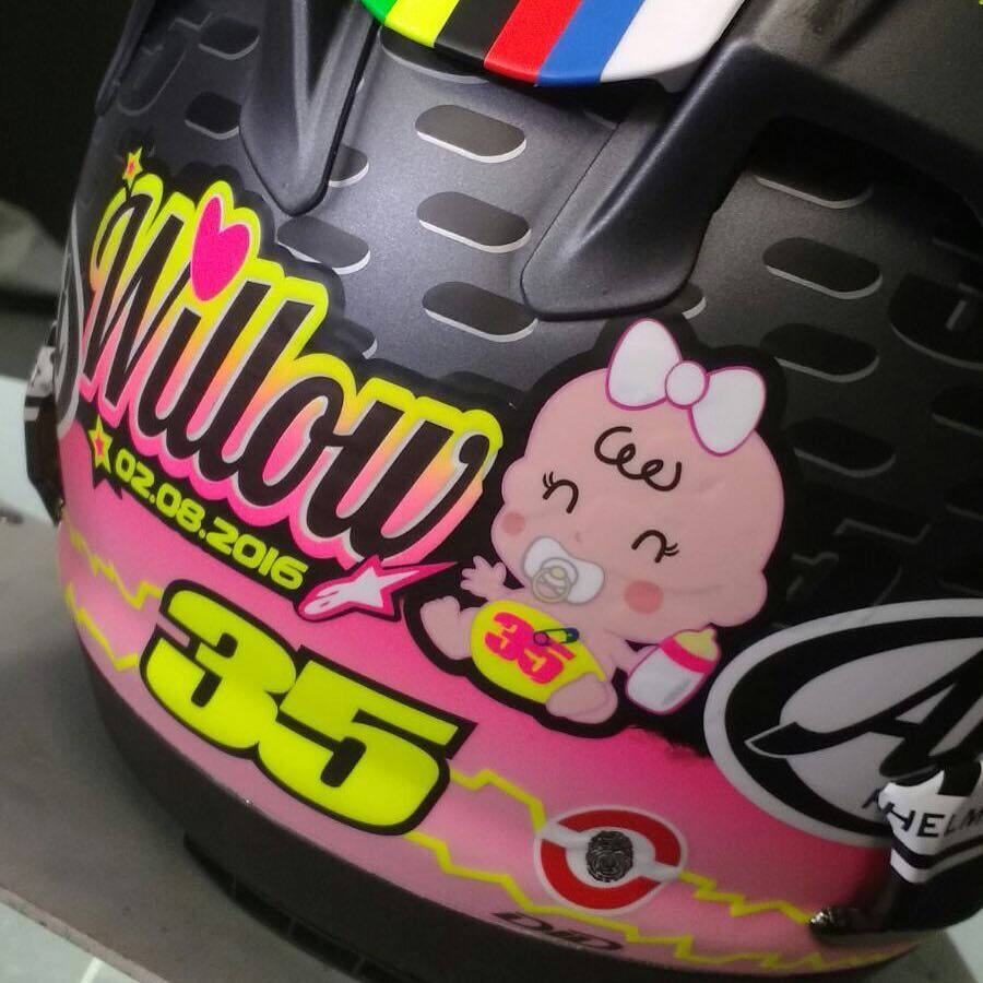 Как мы уже писали, 2-го августа у Кэла Крачлоу родилась дочка Уиллоу. Молодой отец решил отметить это событие новой раскраской шлема.