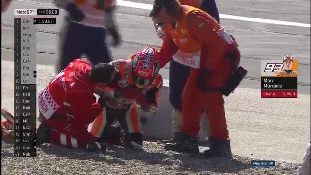 В третьей практике MotoGP Гран-При Австрии Марк Маркес, пилот заводской команды Honda, жестко упал, всеми силами стараясь не врезаться в Дани Педросу, который поехал перед Маркесом не по обычной траектории.