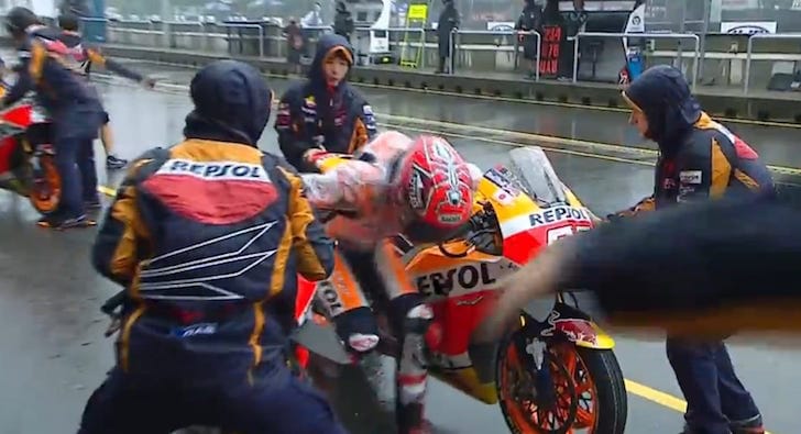 Небольшая ошибка Марка Маркеса при тренировке смены мотоцикла: