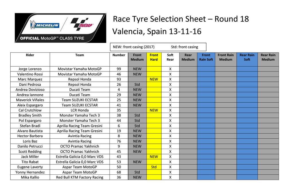 Для этого уик-энда у «Мишлен» было доступна передняя шина нового профиля, которая часть планов на 2017-й. Всем райдерам предоставили вариант воспользоваться этой последней версией Power Slick, и более 75% пелетона в воскресенье решило выступить с этим новым вариантом. Дальнейшее развитие этой шины плюс несколько новых последних версий передка от французской компании будут испытывать на этой неделе, на двухдневных тестах в Валенсии.