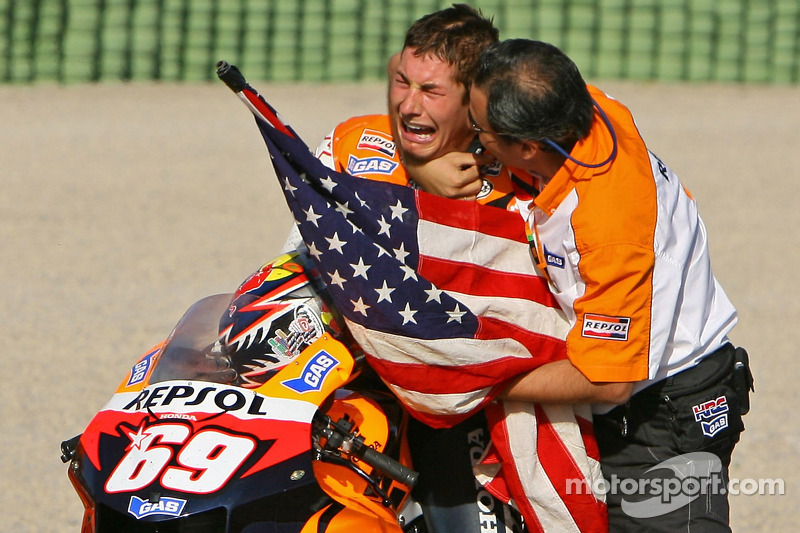 29 октября 2006 года Росси упал и добрался до финиша лишь 13-ым, в то время как Kentucky Kid финишировал на третьем месте, чего было достаточно для того, чтобы стать чемпионом мира MotoGP. Нет смысла пытаться описать эмоции, которые испытывал Хэйден после финиша. Достаточно просто посмотреть видео его круга почета. Этот момент навсегда вошел в историю MotoGP. Ну а Росси, который обычно не в ладах с конкурентами за звание чемпиона мира, дружелюбно поздравил Ники с победой. Всем было хорошо известно, что, несмотря на борьбу за чемпионство, Хэйден и Росси отлично ладили, что редко можно встретить в истории спорта в принципе.