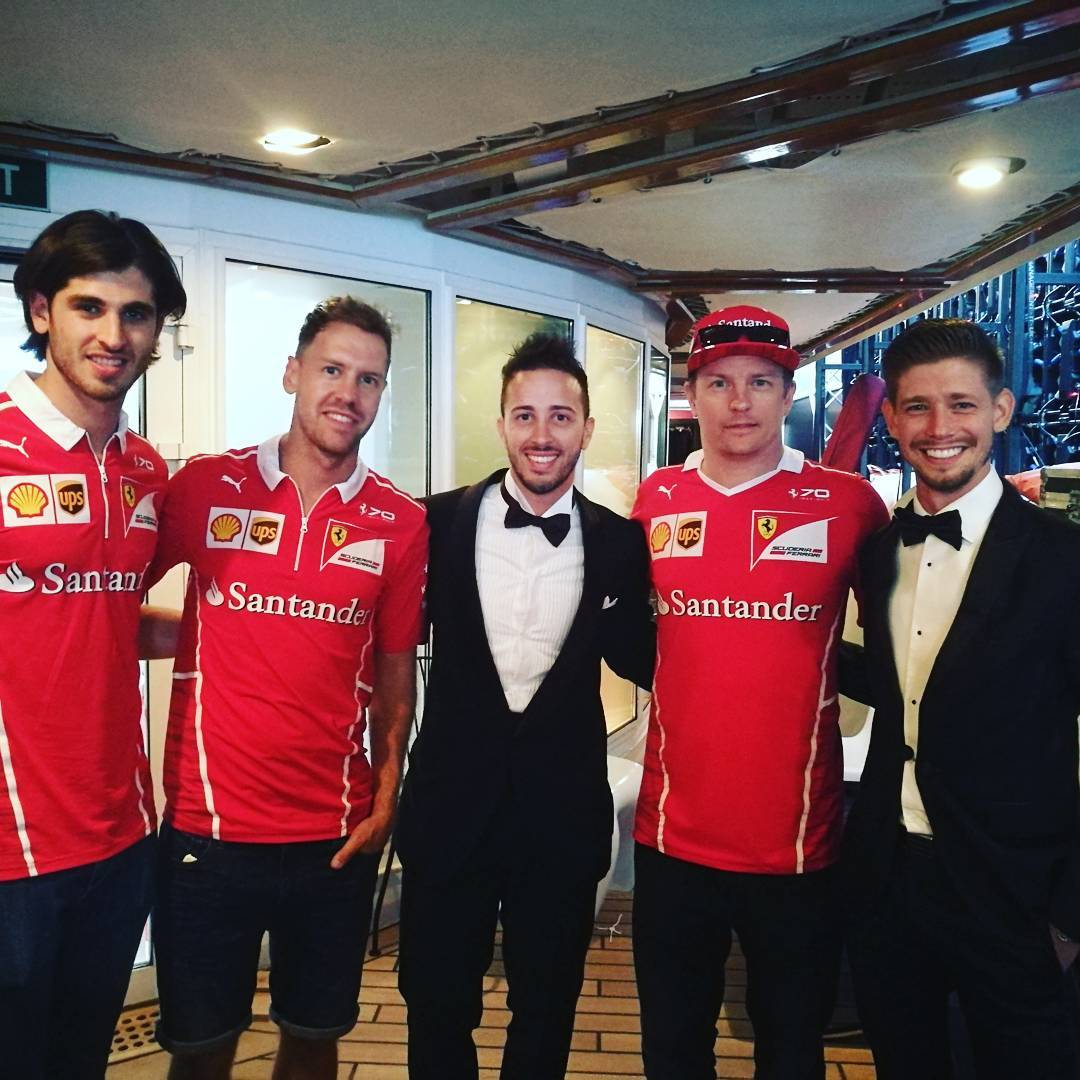 Когда есть возможность, мотогонщики не прочь повидать своих коллег по четырехколесному спорту, и наоборот. На проходящем в эти дни формульном Гран-При Монако особенно выделяется большая мотобратия бывших и нынешних ездоков Ducati, которые приехали поддержать «родственников» из семьи Ferrari. У Скудерии пока все складывается хорошо: в квалификации Кими Райкконен взял свой первый поул с 2008 года, тогда как следующее место на решетке занял сокомандник Себастьян Феттель.