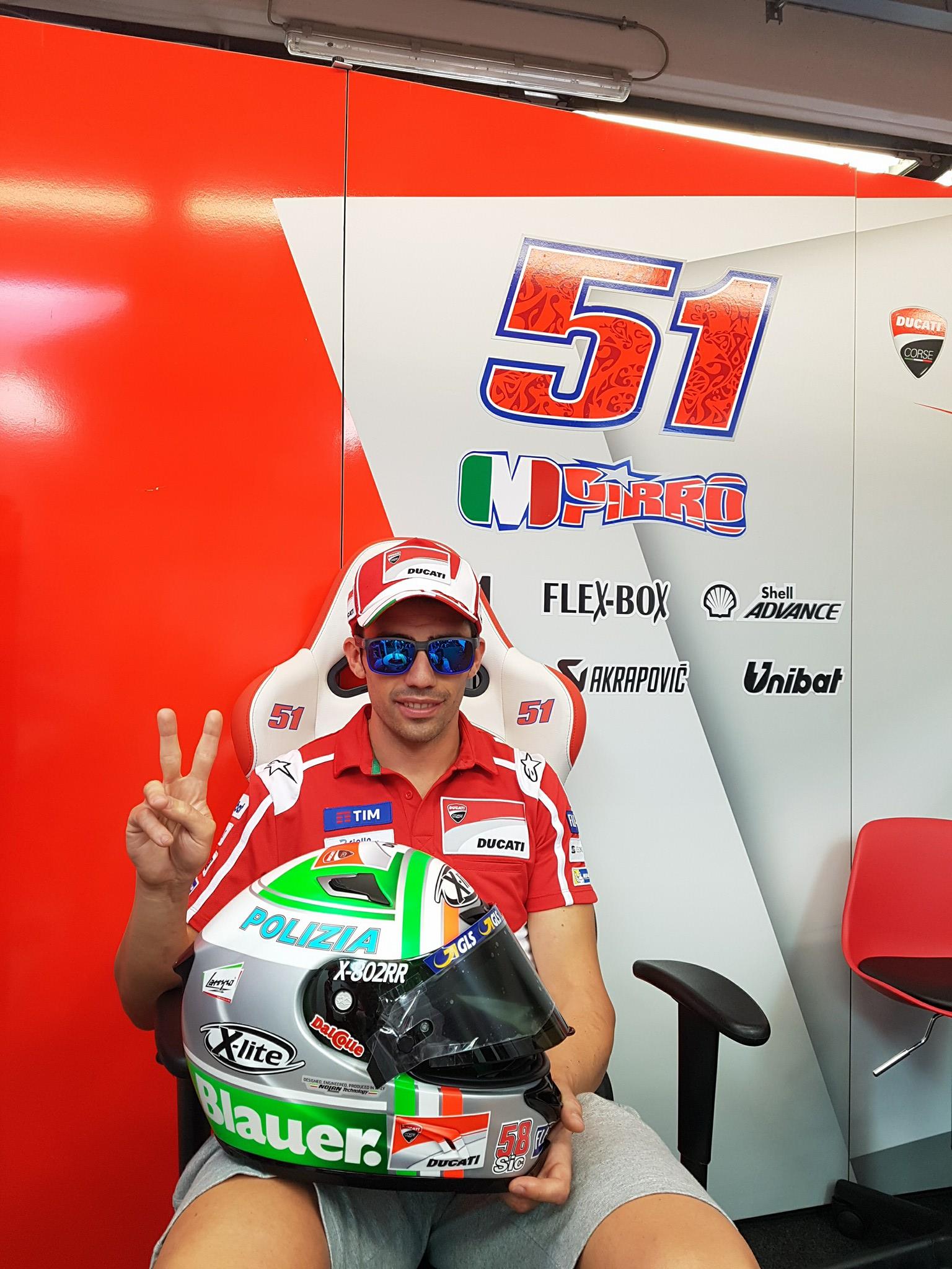 Валентино Росси, Андреа Ианноне и Алейш Эспаргаро выступают на Гран-При Италии в шлемах иных окрасок. Всех троих объединяет тема памяти Ники Хэйдена (шлем Росси также содержит отсылку к футболисту Франческо Тотти, который недавно завершил карьеру). Микеле Пирро тоже подготовил новинку, только проще — его шлем отличается от стандартного варианта небольшим изменением цветов.