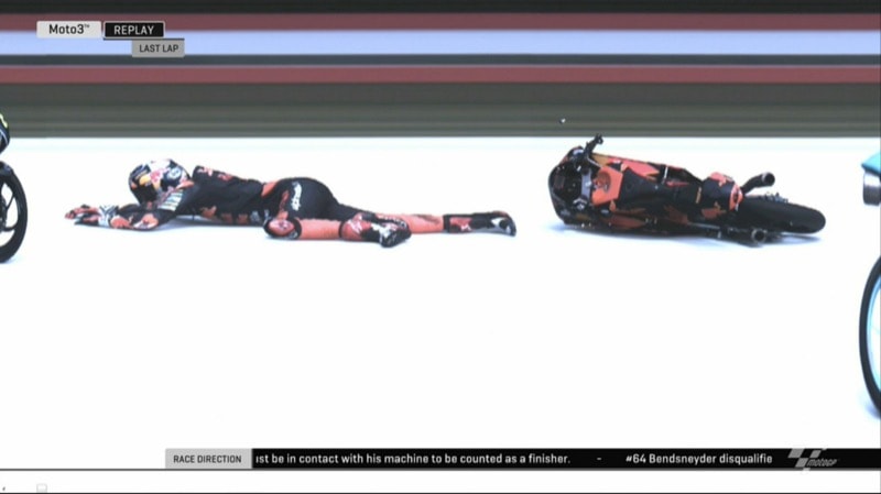 #фотоGP: Касание стоимостью 6 очков Бо Бендшнайдер финишировал в домашней гонке Moto3 Гран-При Нидерландов 10-ым по раздельности с мотоциклом, но его результат не засчитали, так как по правилам гонщик должен контактировать с мотоциклом в момент пересечения финишной черты. А жаль… Теги: Moto3, Бо Бендшнайдер, фотоGP Дата: 25.06.17 Источник: Все о мире Moto Редактор: Все о мире MotoGP