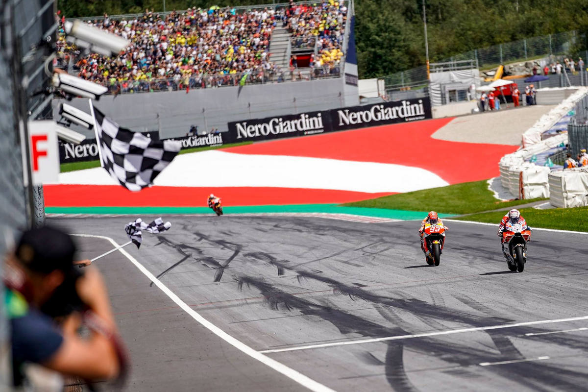 Финальный 28 круг австрийского заезда MotoGP стал битвой умов: идущий вторым Марк Маркес прикидывал, где ему пройти Андреа Довициозо, который знал, что прикидывает соперник, который знал, что тот об этом догадывается.