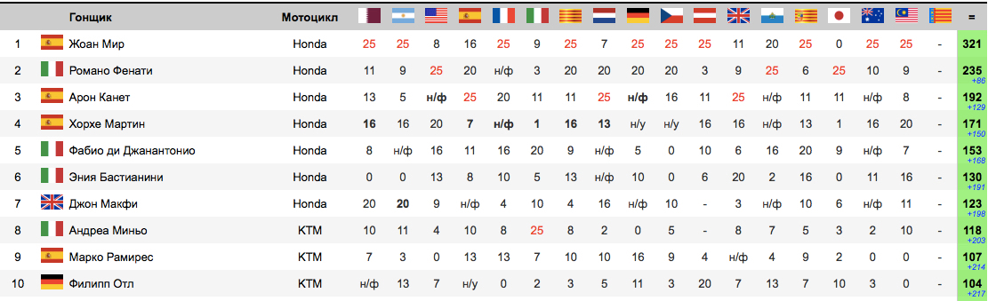 Ситуация в чемпионате после гонки Moto2 Гран-При Малайзии 2017: