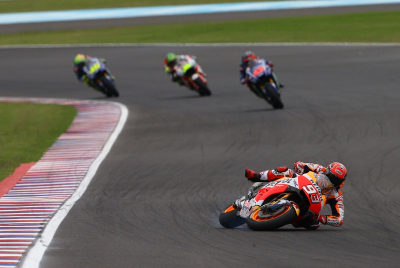 В Катаре ни одного подиумного места не досталось Repsol Honda. В Аргентине их не было и в списке финишировавших. Пока Yamaha радовалась второму двойному глав-3, Марк Маркес и Дани Педроса продолжали подсчитывать убытки. Не то что бы гонка была плохая: Маркес полидировал три круга с небольшим, Педроса на 13-м намеревался пройти в трио лучших. Двойное падение имело резиновые корни: пилот #93 упомянул неясную работу передней шины, пилот #26 сослался на кочковатый второй поворот, где оба закончили заезд.