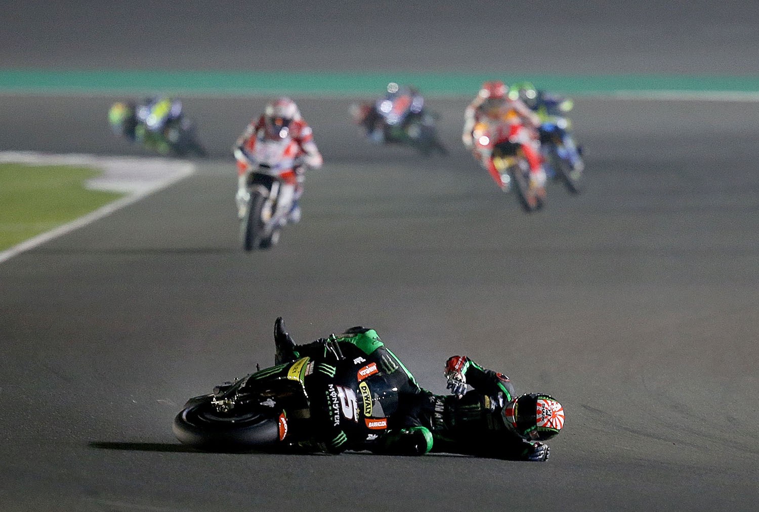 Через пару поворотов седьмого круга ночная сказка закончилась, Зарко упал. От пилота Yamaha Tech 3 ничего не требовали в самой первой гонке, но обида от ошибки меньше не стала. За остальные 17 этапов Жоанн более не сходил, набирал очки 17 этапов подряд — лучший показатель во всем MotoGP. Ближайший — Андреа Довициозо с 15 очковыми финишами в ряд. Ни Валентино Росси, ни Кейси Стоунер, ни Дани Педроса, ни Хорхе Лоренсо, ни Марк Маркес не лидировали в дебютных этапах. Мастер из Франции дважды был чемпионом Moto2 не просто так.