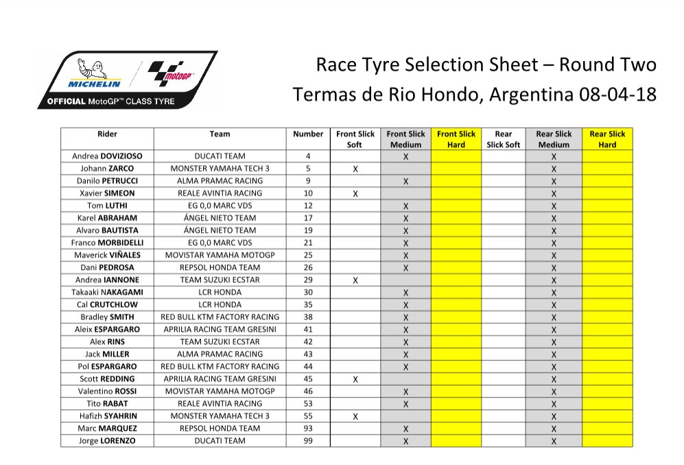 Дополнительный жесткий вариант шин для Гран-При не понадобился. Гонка прошла на просыхающем 23-градусном асфальте и шинам удалось избежать традиционных «пыток» на Термас де Рио Ондо. Сочетание высокой средней скорости и тяжелых торможений после основного и заднего прямиков одинаково сильно нагружает и центр покрышек, и их боковины, но в такую прохладу было иначе.