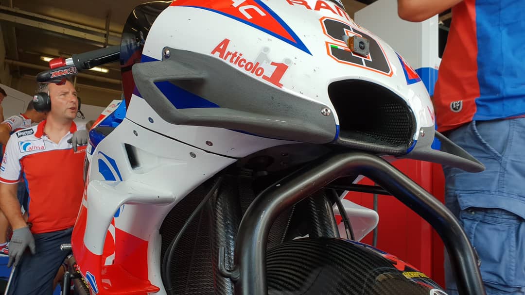 Для Данило Петруччи новый аэрообтекатель Ducati стал сюрпризом. Впервые опробовав его на практике №2 ГП Чехии, он не нашел слабых мест. Явных плюсов двухсоставная конструкция тоже не дает, но отсутствие слабостей — это тоже сила. Итальянец критиковал предыдущие разработки за сильное занижение максимальной скорости, вплоть до потери 10 км/ч.