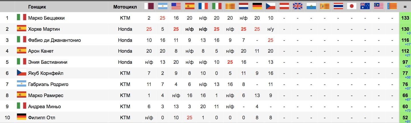 Ситуация в чемпионате после гонки Moto3 Гран-При Чехии 2018