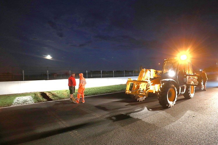 После всех жалоб гонщиков на неудовлетворительное высыхание Сильверстоуна по ходу ГП Великобритании организаторам оставалось одно: экстренно вносить улучшения. Компания Aggregate Industries, зимой выполнившая полную переукладку асфальта, использовала для ликвидации недостатков вечер и ночь с субботы на воскресенье.