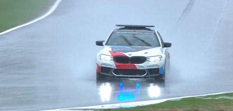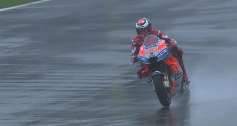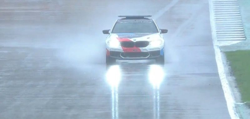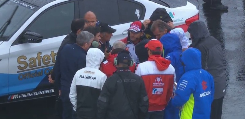 Старт гонки MotoGP ГП Великобритании отложили на неопределенный срок из-за слишком большого количества воды на треке. Дирекция отправила гонщиков обратно в боксы. По словам гонщиков и директора Michelin Motorsport уровень воды на треке составляет приблизительно 15 мм.