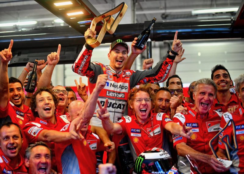 Как я сказал, это труд целой команды. Я думаю, доля заслуги есть у всех людей в «Дукати». Ездока или команду люди видят только на гонке, но там дома много людей, которые внесли вклад в этот результат. Это как футболисты: вы смотрите игру в воскресенье, но вы не знаете, что они с понедельника работали и готовились к игре. Это то же самое.