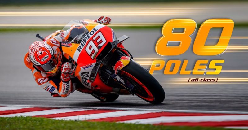 Выиграв квалификацию MotoGP ГП Малайзии, пилот Repsol Honda добавил в свою копилку 80-ый поул в карьере. В данном показателе испанец лучший. У его ближайших соперников — Хорхе Лоренсо и Валентино Росси — 69 и 65 поулов соответственно.