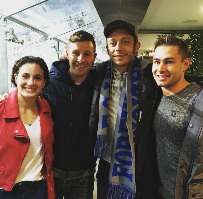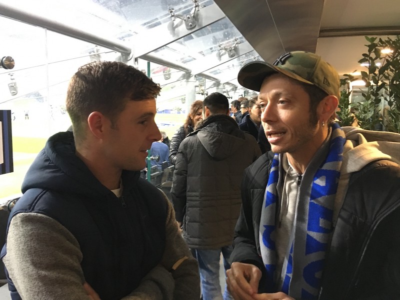 На футбольном матче между миланским «Интером» и «Барселоной» 6 ноября произошла интересная встреча: в ВИП-ложе стадиона Сан-Сиро оказались гонщик MotoGP Валентино Росси, чемпион World Superbike Джонатан Рей, чемпион British Superbike Леон Хэзлам и чемпионка World Supersport 300 Ана Карраско. В Милан всех привела работа: гонщики трудятся на мотовыставке EICMA.