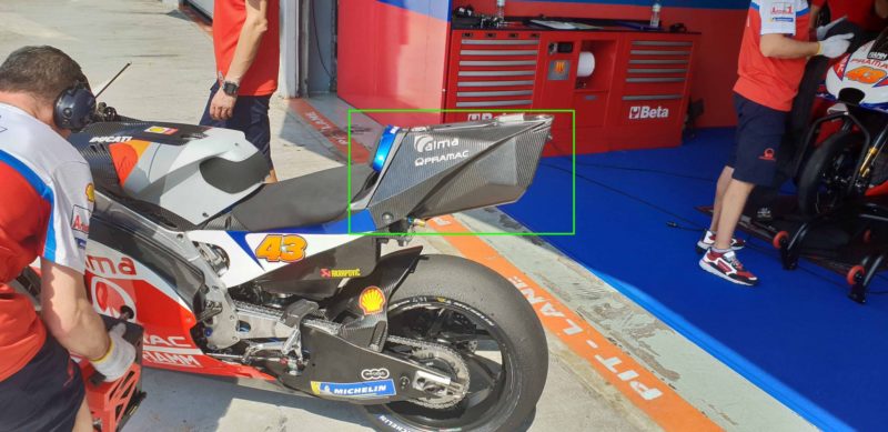 Все хорошо помнят о разработке Луиджи с названием «салатница», находящейся в хвосте байка. Ее функцию так и не раскрыли, кроме факта, что это часть хвостового обтекателя. Как видно на фотографии ниже, в Малайзии Джек Миллер протестировал «салатницу» размера XL. У австралийца большой аппетит…