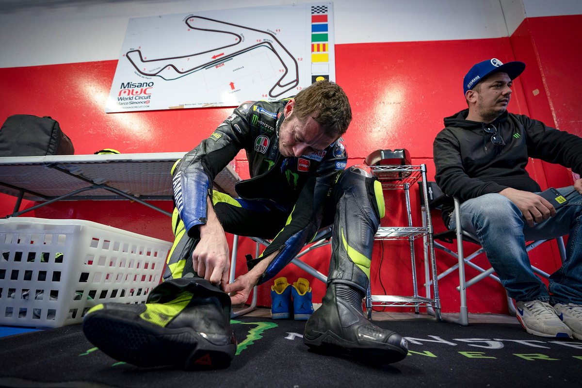 На этой неделе Академия совмещала всё: грунт-трек, мотокросс, и впервые за долгое время асфальт. Место прежнее — Misano World Circuit в 10 километрах от Тавулии. Росси и его протеже Франко Морбиделли привезли свои Yamaha R1, и с интересом поглядывали на мотоцикл Франческо Баньяйя — крылатый Ducati Panigale V4R. Этот аппарат — гражданская версия супербайка Альваро Баутисты из WSBK, на котором пока выиграно шесть заездов из шести.
