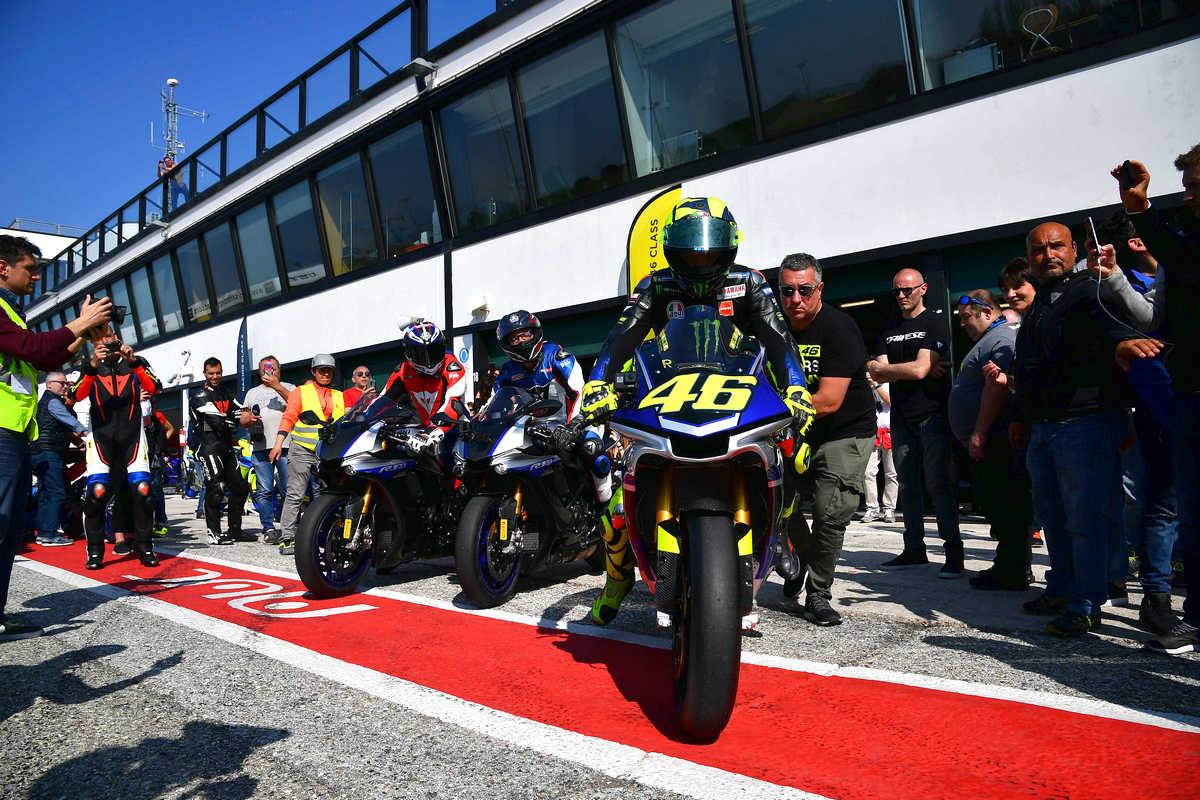 Самой элитной группой был «Класс VR46». К ней после полудня и присоединился Росси. Доктор показывал и рассказывал, как быстрее всего ездить по треку. Теория закреплялась практикой в седле Yamaha R1. Одним из критериев попадания в группу было время прохождения Мизано. Кандидаты должны были уложить горячий круг в 1:55. Для сравнения: поул-позиция Тома Сайкса на этапе WSBK 2018 — 1:33.640.