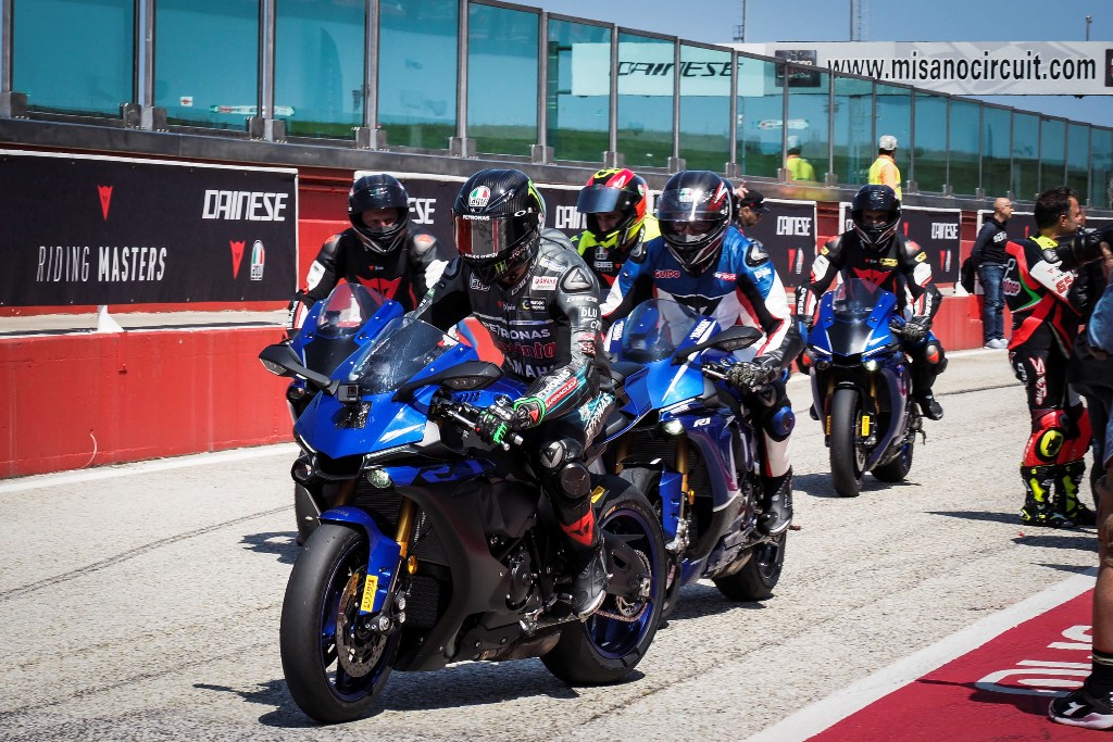 Теперь опыт Росси уходит в широкие массы. — такова идея производителя мотоэкипа Dainese. 17 апреля на трассе Misano Marco Simoncelli компания первый раз организовала день ездового мастер-класса Dainese Riding Master. Фанатов мотоциклизма разделили на группы по опыту: начинающие получали уроки безопасной езды на Yamaha YBR125 и 250, более опытных обучали правильной спортивной технике на R1.