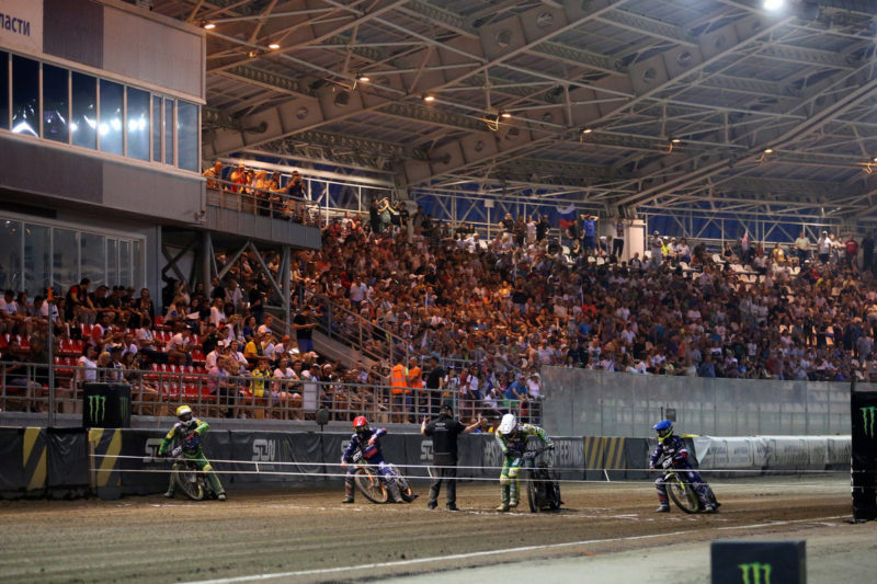 Единственный бонус, которым стадион имени Анатолия Степанова обеспечил Эмиля, Артёма и Глеба — поддержка российских фанатов. Сидя на трибуне, я думал, что стадионная звуковая система могла бы работать и потише: музыка и речь комментатора в перерывах между схватками весьма били по ушам. Как будто рёва четвёрки карбюраторных 500-кубовых мотоциклов было недостаточно. Но каждый раз, как на треке появлялись наши гонщики, восторженные болельщики из Тольятти, Самары, Салавата (родного города Эмиля и Глеба), Владивостока и других мест так громко их приветствовали, что уши можно было откручивать и убирать в карманы. Такого уровня децибел я не ожидал. Жаль, что не было слышно приезжих фанатов из-за рубежа. Казалось, их просто нет. Российский стадион сам болел и за своих, и за австралийцев, и за немцев, и чуть-чуть за поляков.