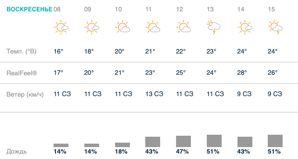 #CzechGP 2019: прогноз погоды на воскресенье — возможны осадки Прогноз погоды на воскресный день Гран-При Чехии 2019. Разминка и гонка MotoGP начнутся в 9:40 и 14:00 соотвественно по местному времени (GMT+2). Теги: MotoGP, Погода, фотоGP Дата: 04.08.19 Источник: По материалам официального пресс-релиза Редактор: Все о мире MotoGP